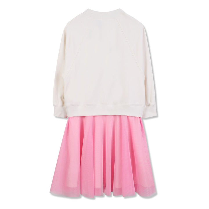 Girls Ivory & Pink Tulle Dress made from 1% polyester, featuring a layered tulle skirt and a charming, elegant design perfect for special occasions.
