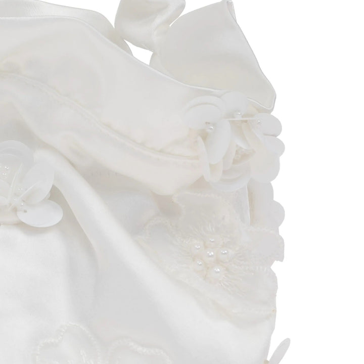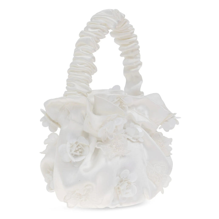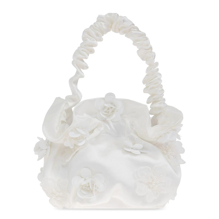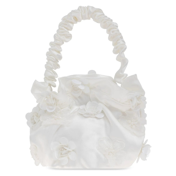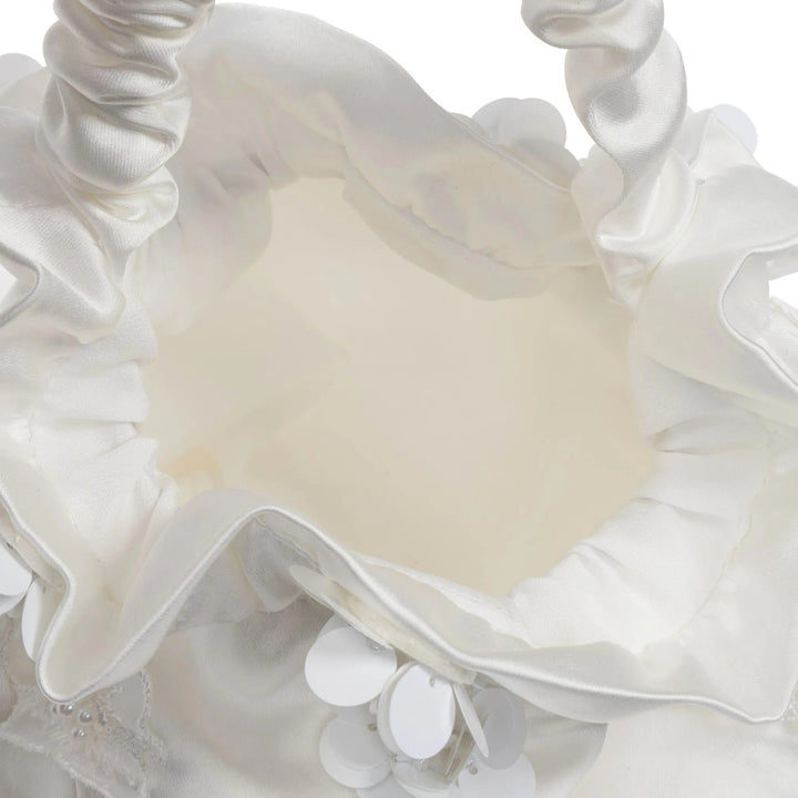 A gorgeous ivory handbag for girls from Self-Portrait, with tonal lace and sequin flower decorations. The compartment fastens with a magnet for security.