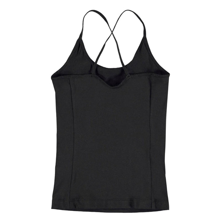 Janis is a black cotton vest with crossed straps on the back. It comes in a small, fabric bag. This Molo product is GOTS certified organic, which means that it is made with certified organic materials and produced under the strictest social and environmental standards throughout the entire manufacturing process. In addition, the GOTS certification secures that the product is free of hazardous chemicals. This Molo product is GOTS certified organic by Ecocert Greenlife, certification number 197496.
