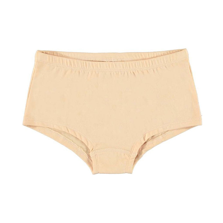 Pack of two organic cotton knickers for teen girls by Molo. Soft, stretchy and comfortable, one pair is plain ivory, whilst the other pair is in a lovely shade of pink-beige, with a pretty botanical berry print. Ideal for travelling, they are present