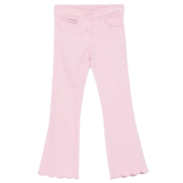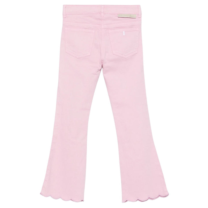 Charming lilac-pink denim jeans detailed with scalloped hems, crafted from 97% cotton and 3% elastane for a soft and flexible fit.