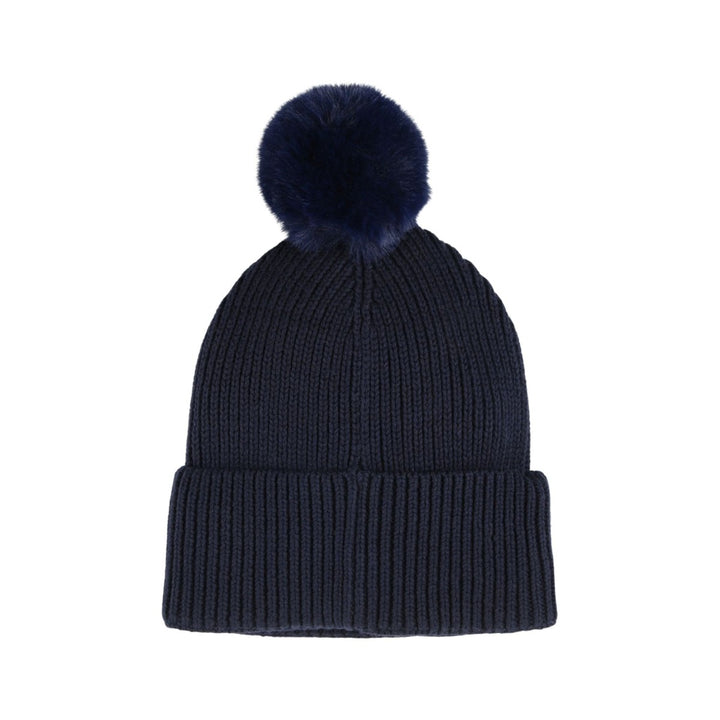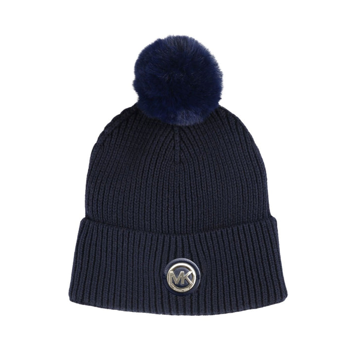 Girls Navy Blue Applique-Logo Ribbed Beanie
