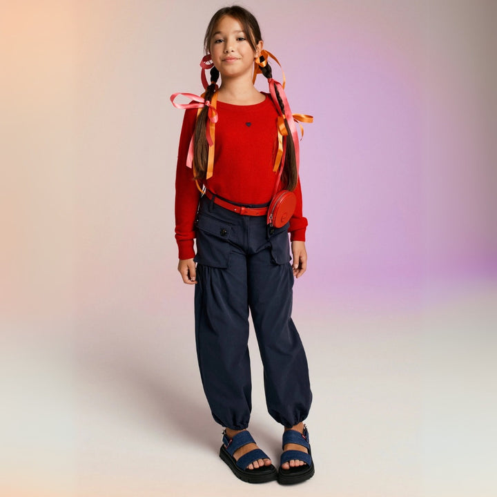 Girls Navy Blue Drill Cargo Pants
