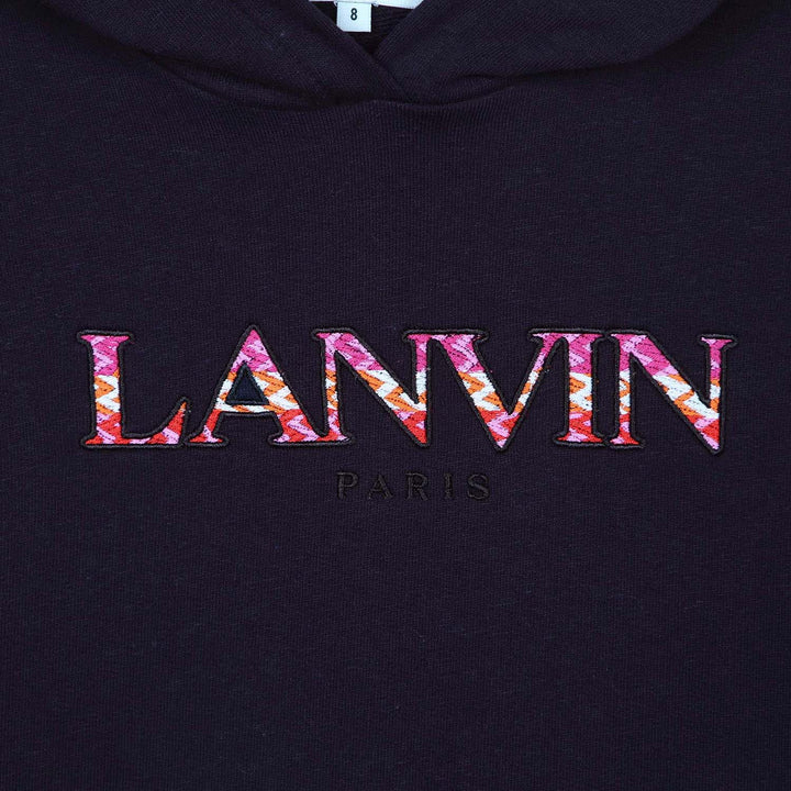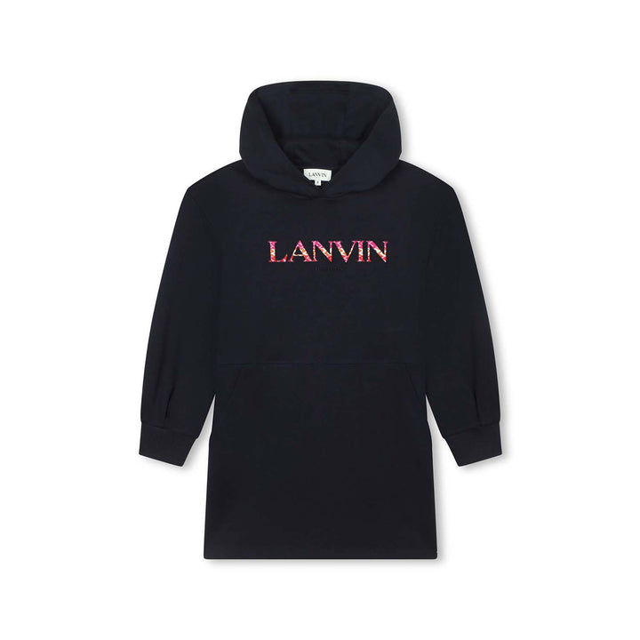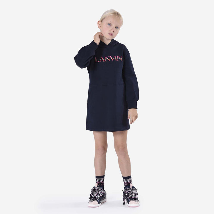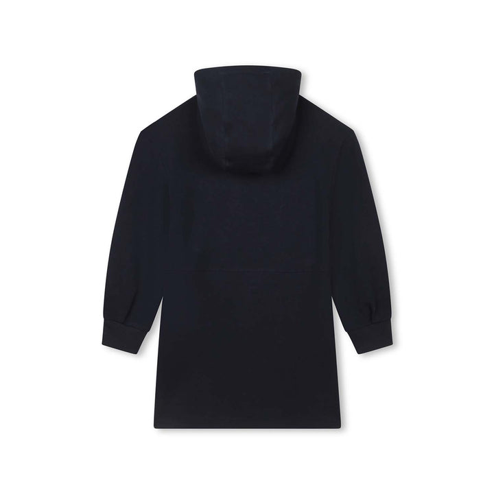 Girls Navy Blue Logo-Applique Hooded Dress