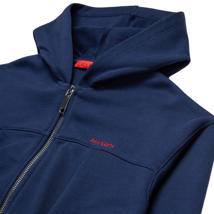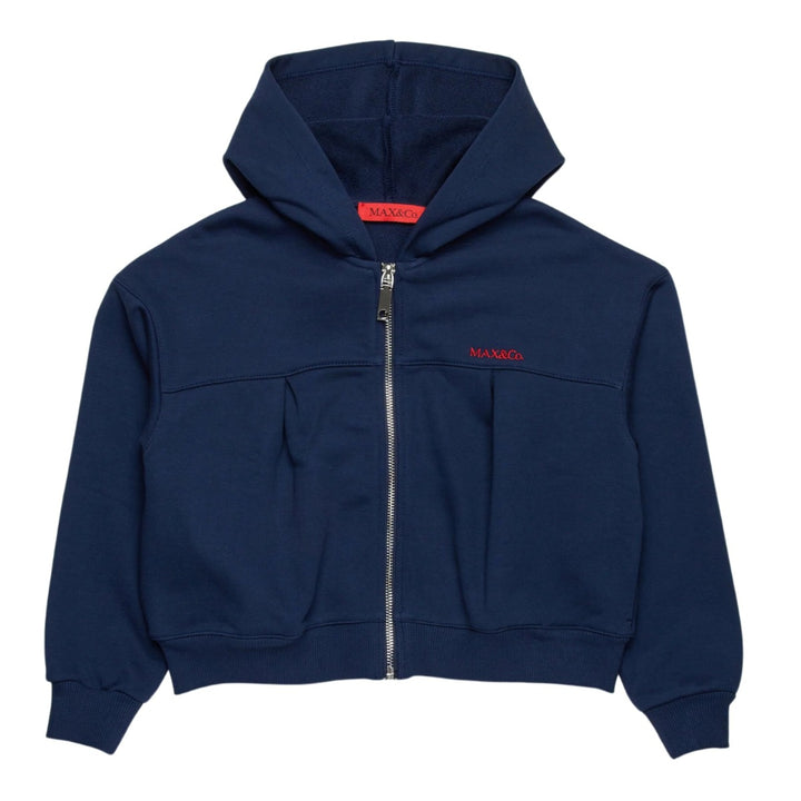 Long-sleeved zip-up hoodie . Embroidered MAX&Co. logo in contrasting colour on the front on the heart side. Front and back embroideries that give volume to the garment. Front welt pockets. Front zip closure. Ribbed cuffs and bottom construction.