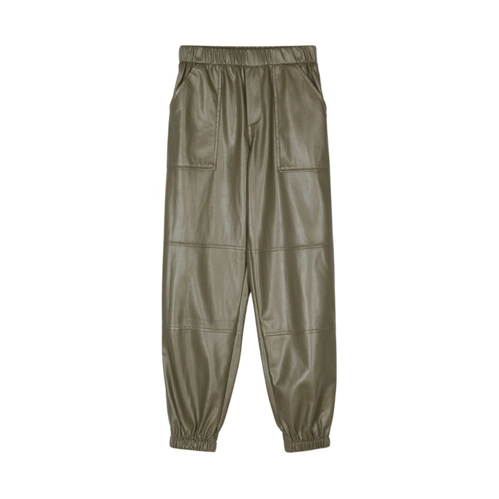 Girls Olive Green Faux Leather Trousers