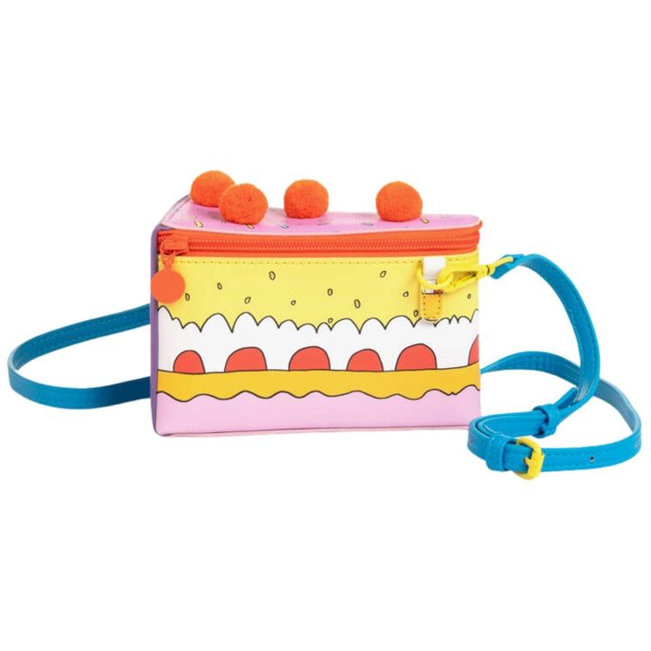 Girls will love this fun pale pink and yellow shoulder bag by Stella McCartney Kids, designed to look like a colourful slice of cake. Made in faux leather, it has a single, lined compartment with a vibrant orange pom-pom detailing on the top and a matching orange zip fastening. This playful accessory has a bright blue adjustable and detachable shoulder strap for comfortable wear.