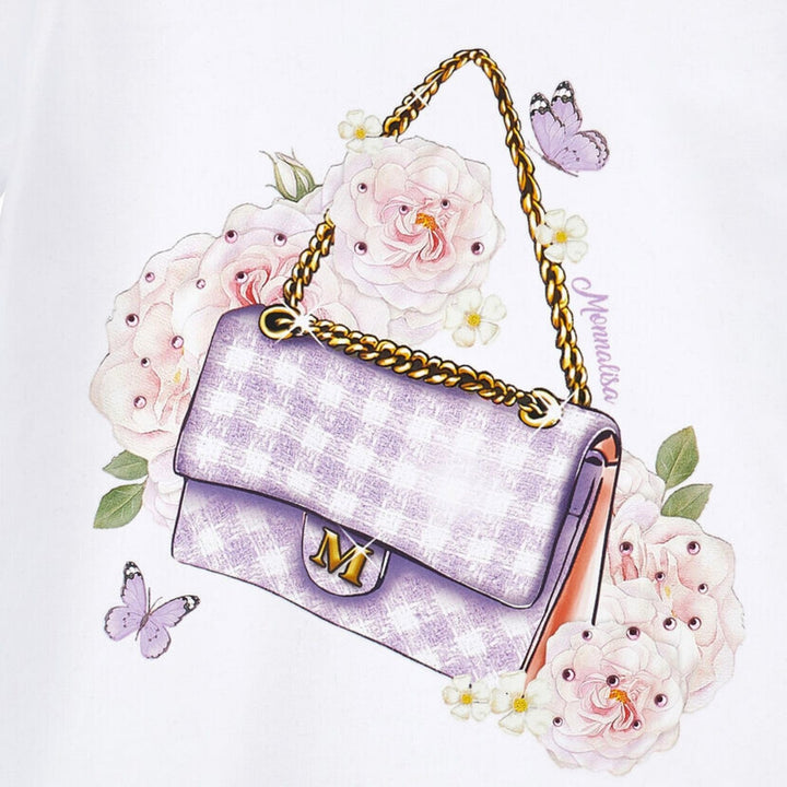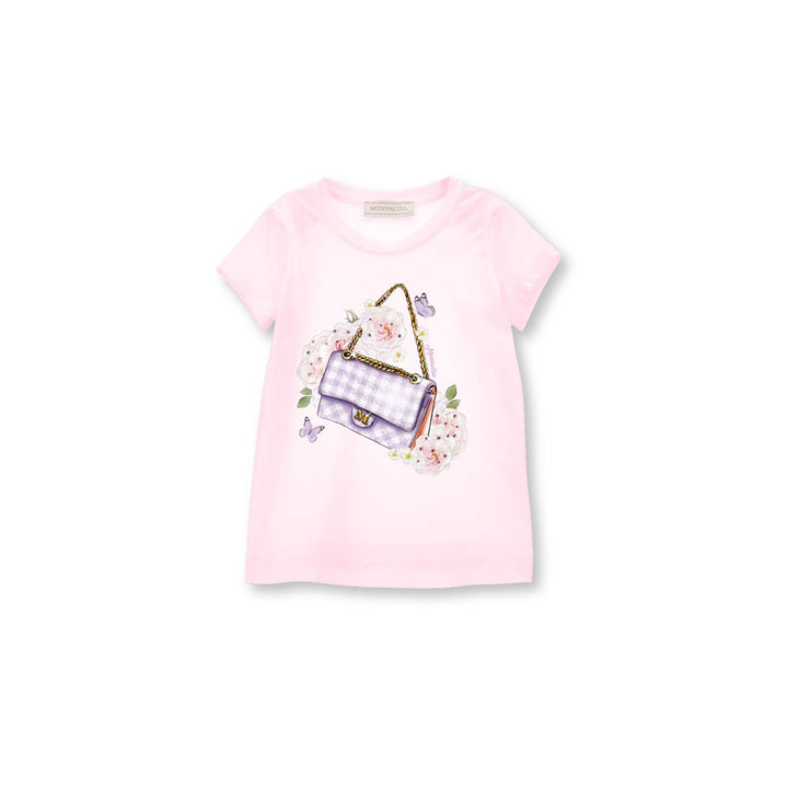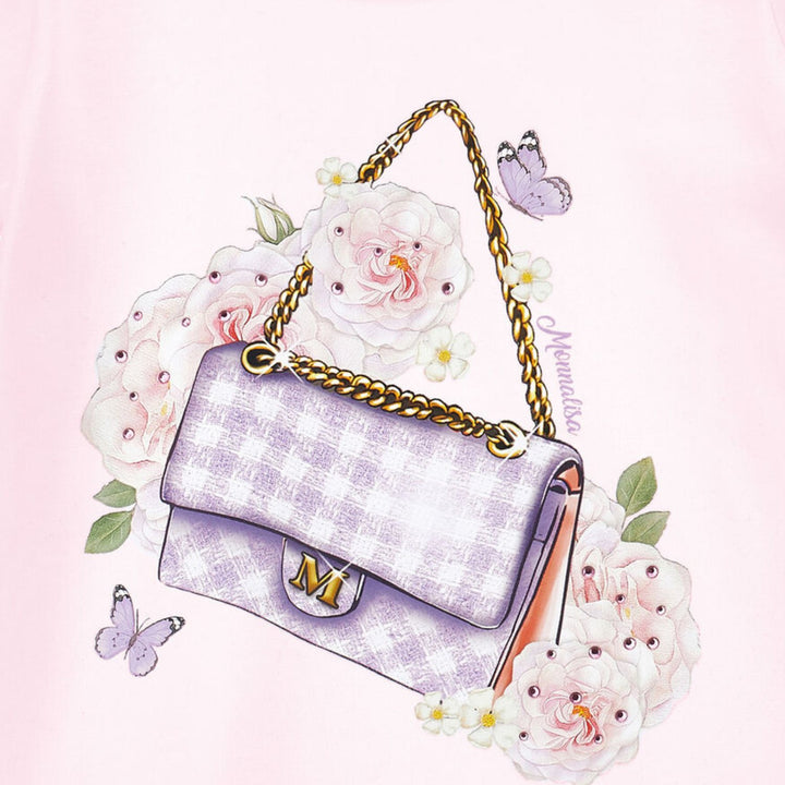 Girls Pink Bag-Print T-shirt with Rhinestones