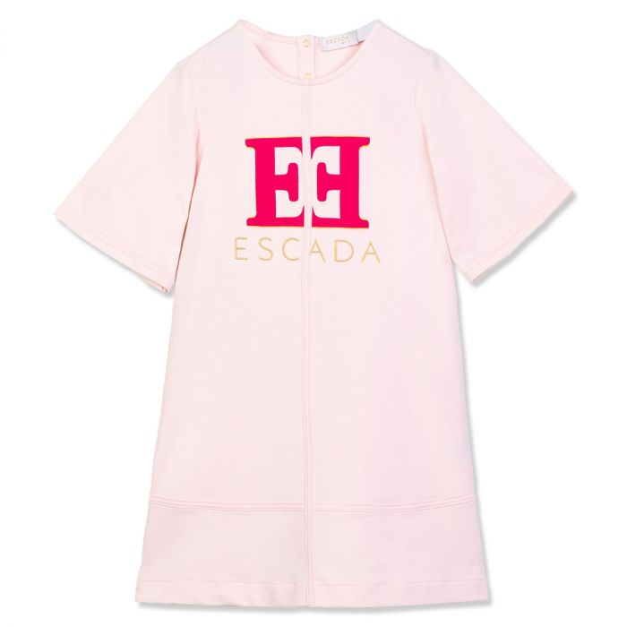 This Escada pink dress features an embroidered logo, combining elegance with comfort. Made from 95% cotton and 5% elastane, it offers a soft touch and slight stretch for ease of movement.