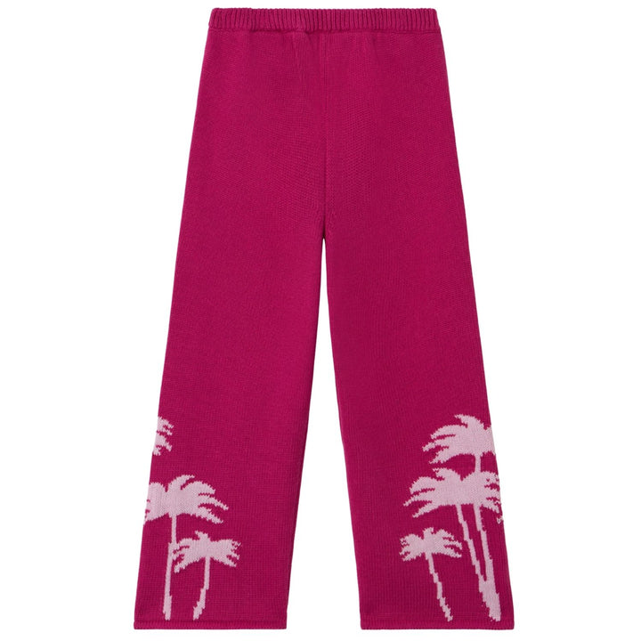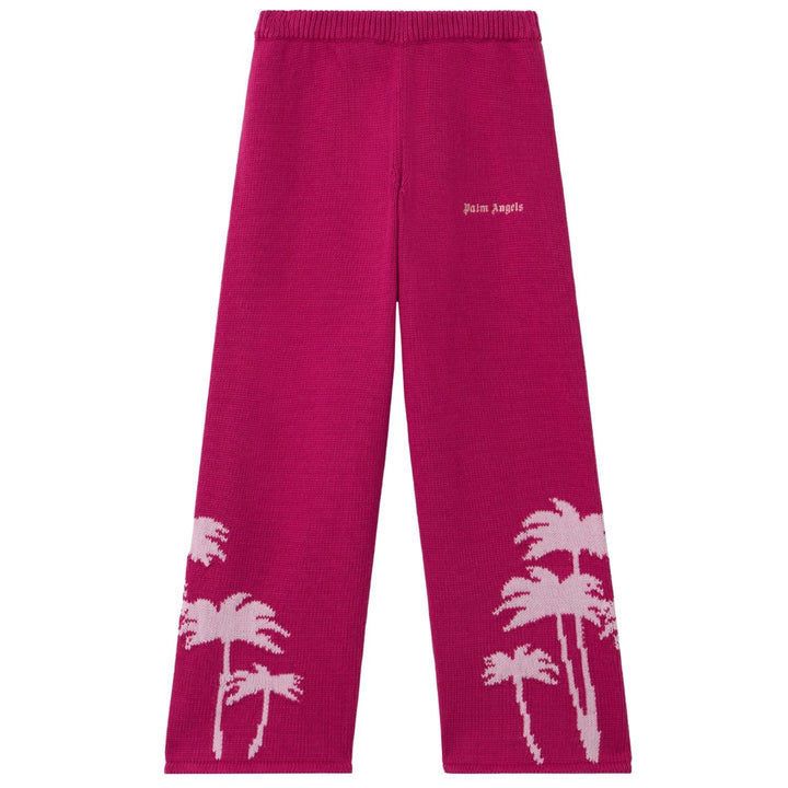These soft pink knitted trousers from Palm Angels are perfect for laid-back luxury. Crafted from a premium cotton blend, they feature a comfortable elastic waistband and the brands iconic embroidered logo detail for a chic designer touch.