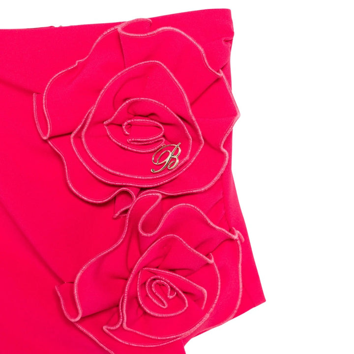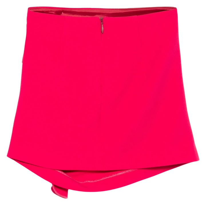 This hot pink mini skirt blends bold style with feminine charm. Featuring 3D floral applique with contrast piping, it adds unique texture and dimension. The asymmetrical hemline creates a modern silhouette, while the gold-tone monogram adds a touch of luxury. Crafted from structured fabric, it ensures a flattering fit and polished look. Perfect for day or night, this skirt is sure to turn heads.