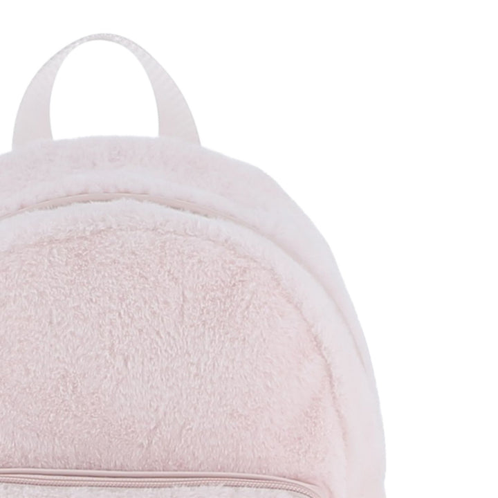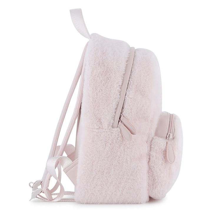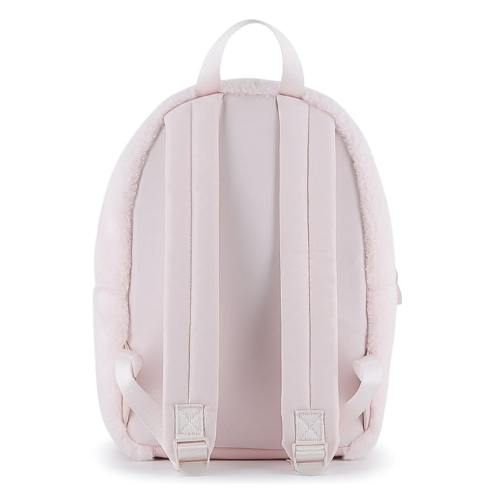 Charming pink fur backpack for girls by Karl Lagerfeld, featuring a soft plush design and signature logo detail for a luxe playful touch.