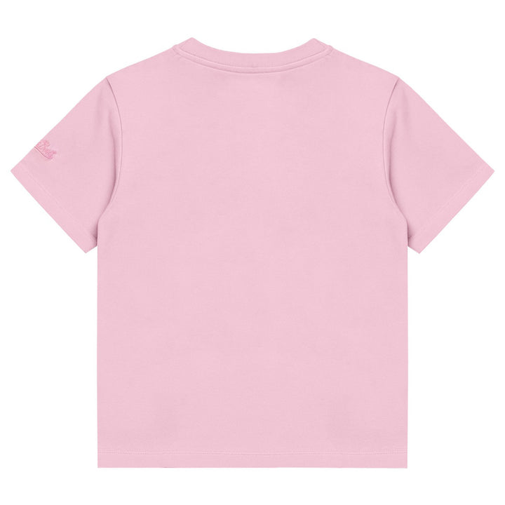 The Girl Pink and Blue Embroidery T-Shirt from MC2 Saint Barth is a delightful addition to any young girls wardrobe, blending playful color and sophisticated embroidery. The soft pink cotton fabric is beautifully complemented by intricate blue embroi