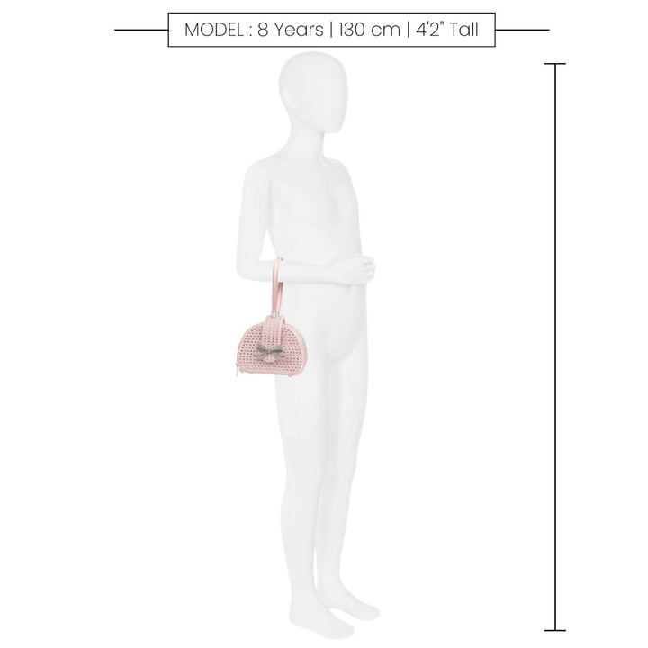 A gorgeous pink satin handbag for girls by Self-Portrait, embellished with heart-shaped rhinestones for a beautiful sparkle. Adding an extra touch of glamour, a diamante bow decorates the front and there is a fixed carry handle on the top. An ideal size for those smaller essentials, this compact bag secures with a magnetic popper.