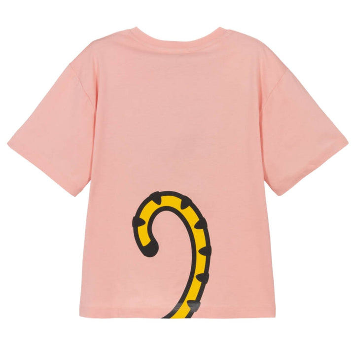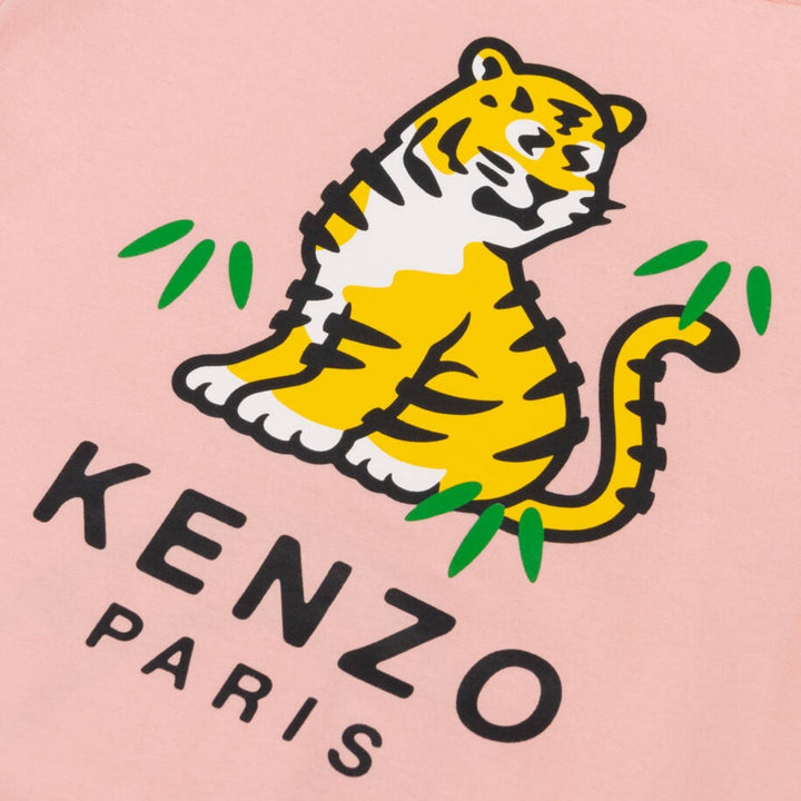 Pink organic cotton T-shirt for girls by KENZO KIDS, made in soft jersey. For instant designer appeal, it features the luxury French label's Kotora Tiger and logo print on the front, with a Tiger Tail on the back for a playful touch. Ideal for casual