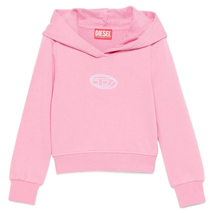 Diesel girls pink hoodie with logo patch detail. Made from 100% cotton for a soft and breathable feel. A cozy and stylish choice for everyday wear.