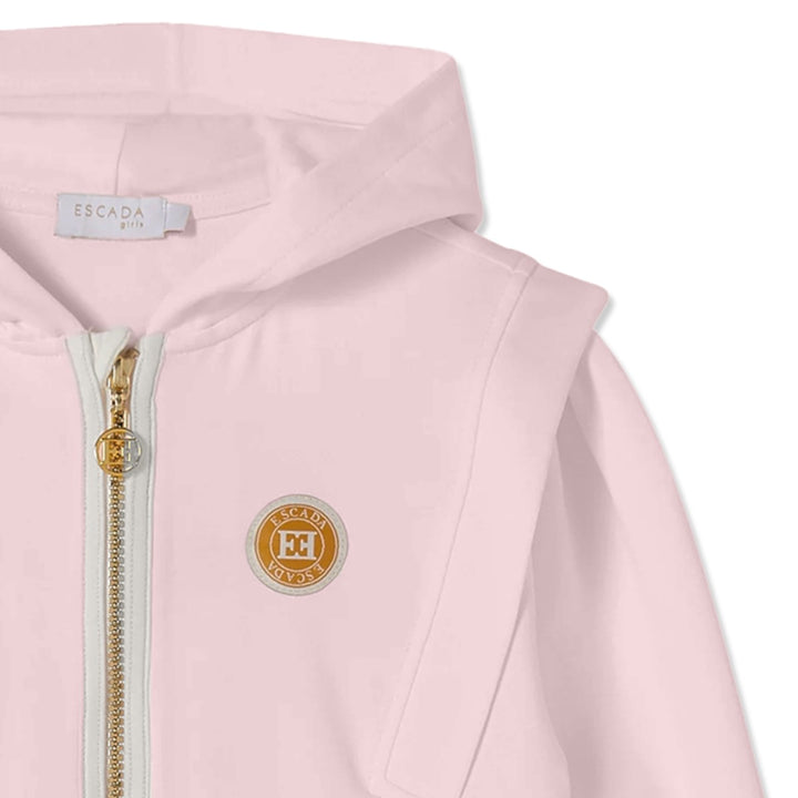 This Escada girls hoodie in pink features an embroidered logo, a zip-up front, and twin pockets for added practicality. Made from 95% cotton and 5% elastane, it offers a soft, comfortable fit with gentle stretch.