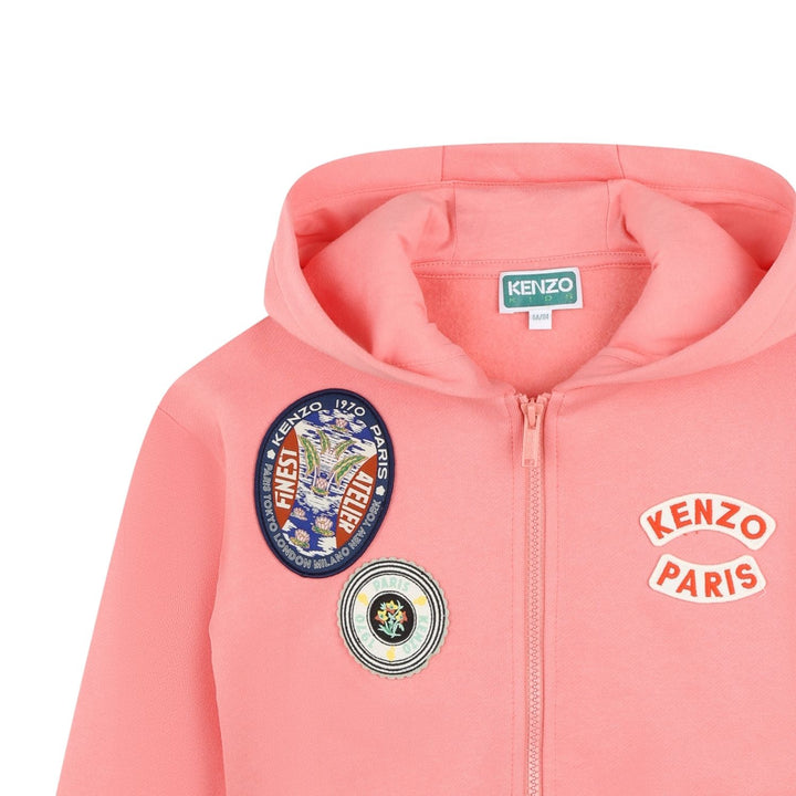 Girls Pink Logo Patches Zipped Hoodie