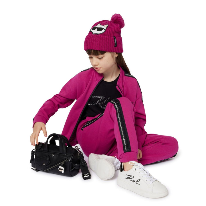 Keep her comfy and stylish in these pink logo-print joggers from Karl Lagerfeld. Made from soft fabric with a relaxed fit, they are perfect for everyday wear with a touch of designer flair.