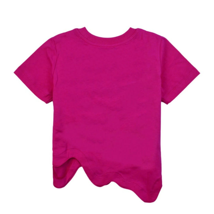 Girls Pink Logo-Print Scallop-Hem T-shirt
