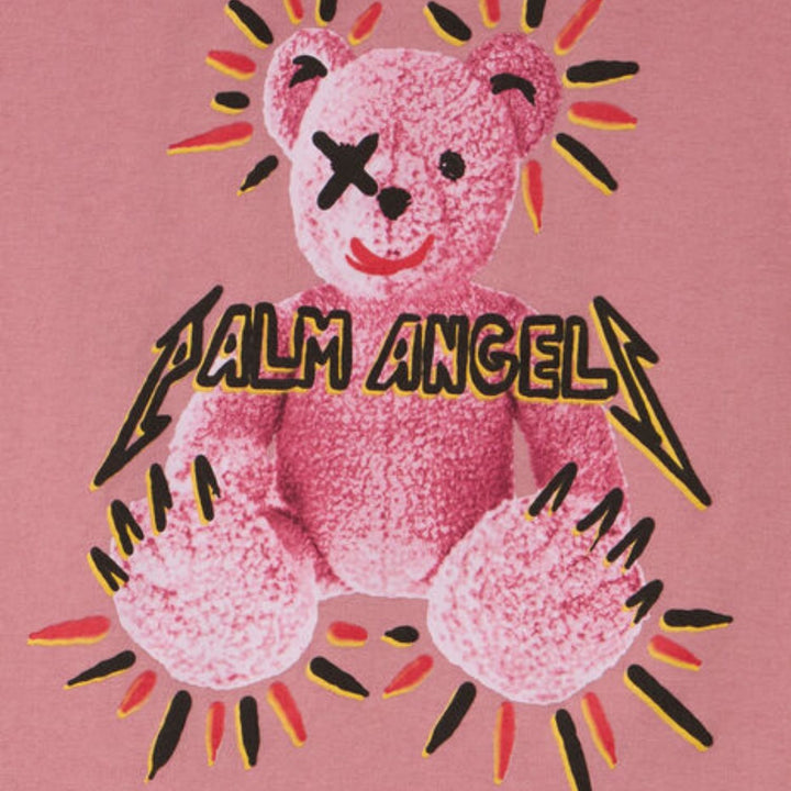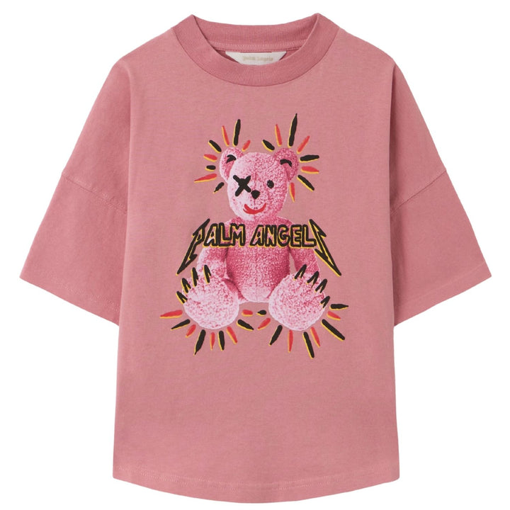 Girls pink logo-print T-shirt by Palm Angels made from soft cotton, featuring the brands bold logo across the chest, short sleeves, and a classic crew neckline for a chic casual look.