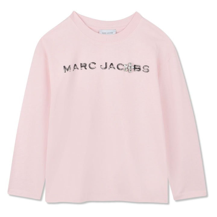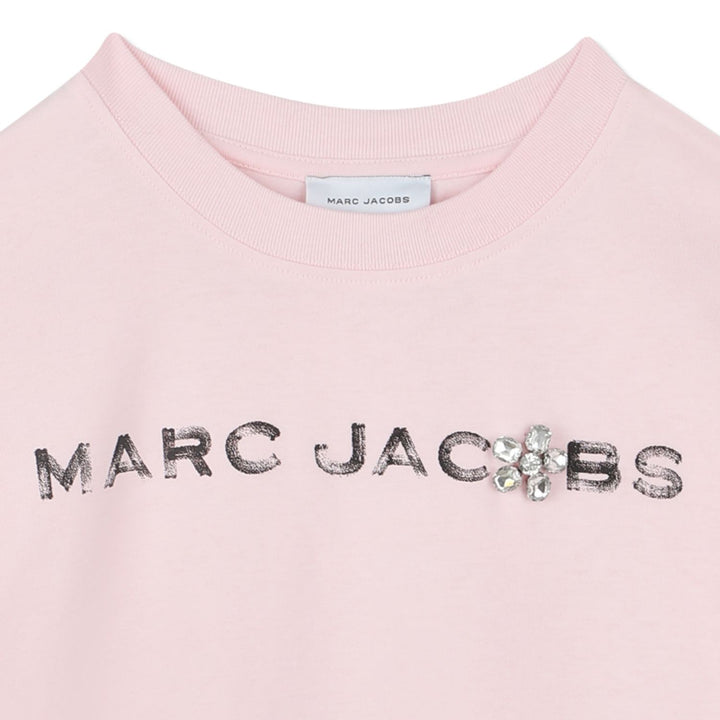A trendy pink T-shirt showcasing a signature logo print, made from soft 100% cotton for a comfortable and stylish everyday look Marc Jacobs.