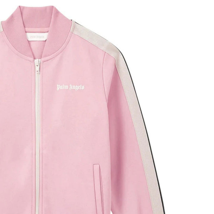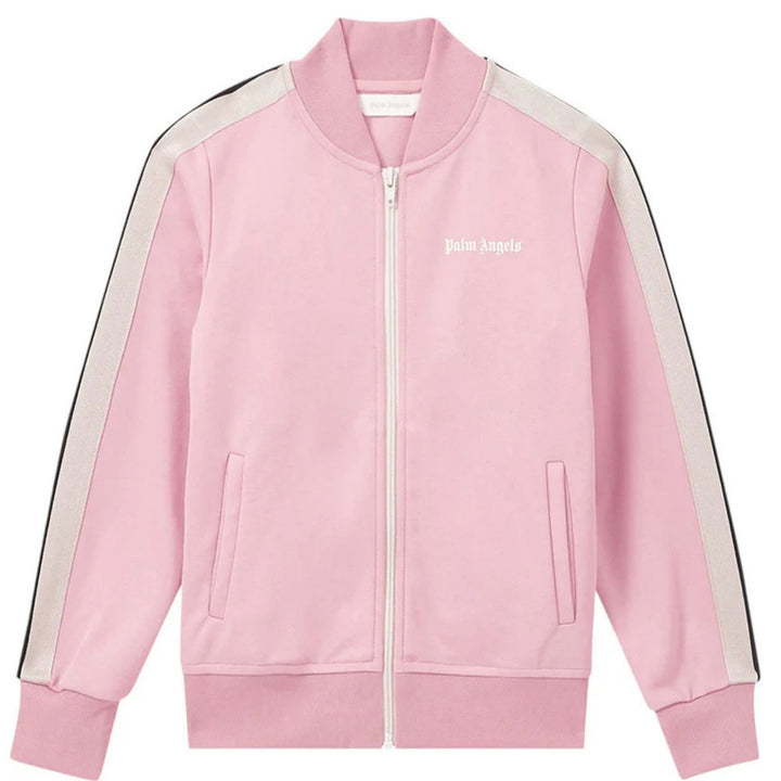 This pink zip-up sweatshirt from Palm Angels brings a blend of sporty comfort and luxury flair. Crafted from soft premium cotton, it features the brands bold logo print on the chest and a smooth front zipper for easy wear.