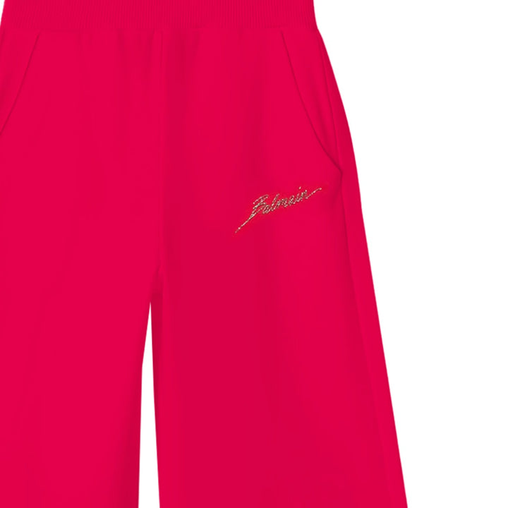 Chic and contemporary, these pink wide-leg trousers from Balmain bring a polished touch to her everyday style. Tailored from a soft, fluid fabric, they feature a high-rise waistband and a flowing wide-leg silhouette that offers both comfort and elegance. Subtle detailing and impeccable craftsmanship reflect Balmains signature refinement. Perfect for pairing with a fitted top or blouse for a fashion-forward look, ideal for outings or special occasions.