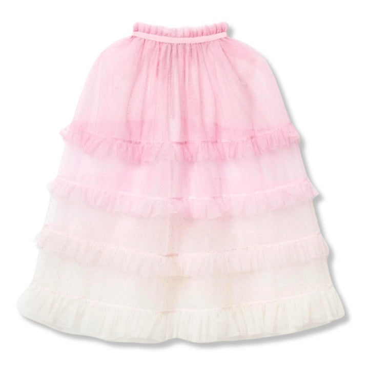 A beautiful pink cape for girls by Self-Portrait, made in fine tulle for a lightweight feel. A great addition to any special occasion outfit, this lovely piece has an ombré finish, gradually changing from pink to white at the hem. Delicate pink polk