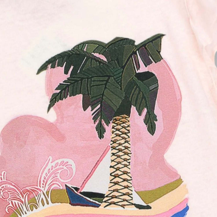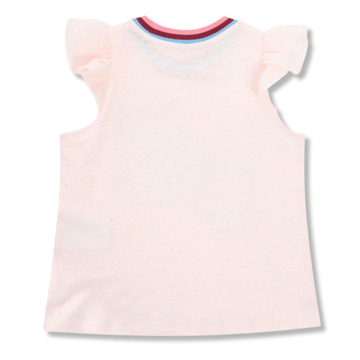 Girls Pink Printed Cap-Sleeves T-Shirt