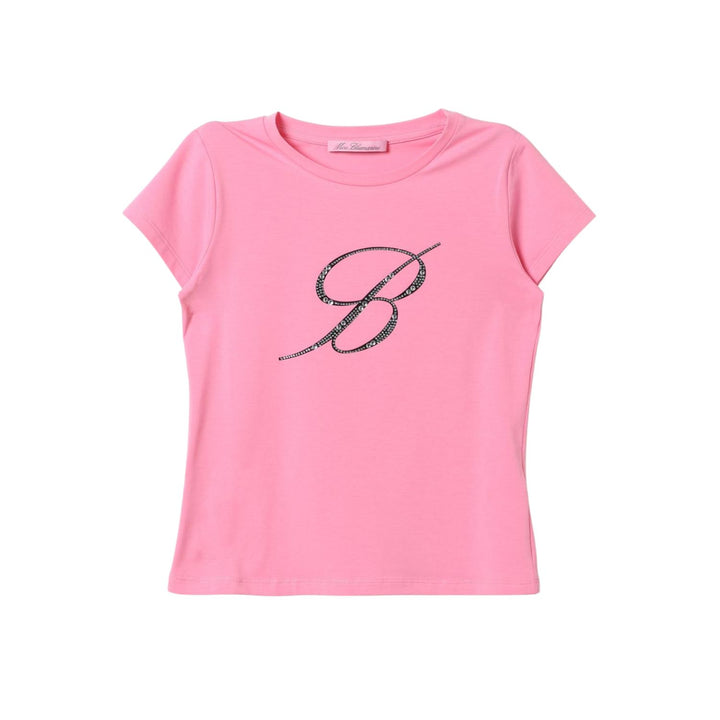 Girls Pink Rhinestone-Logo Cotton T-shirt