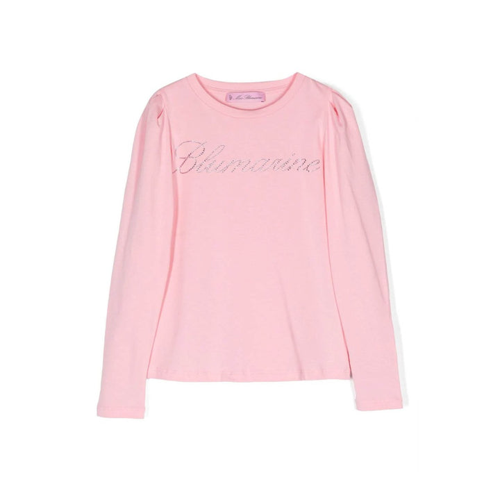 Girls Pink Rhinestone-Logo Stretch-Cotton T-shirt