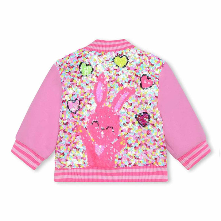 Girls Pink Sequin Bunny Bomber Jacket