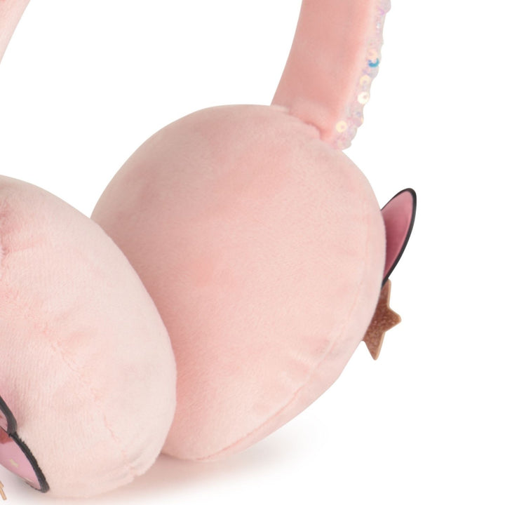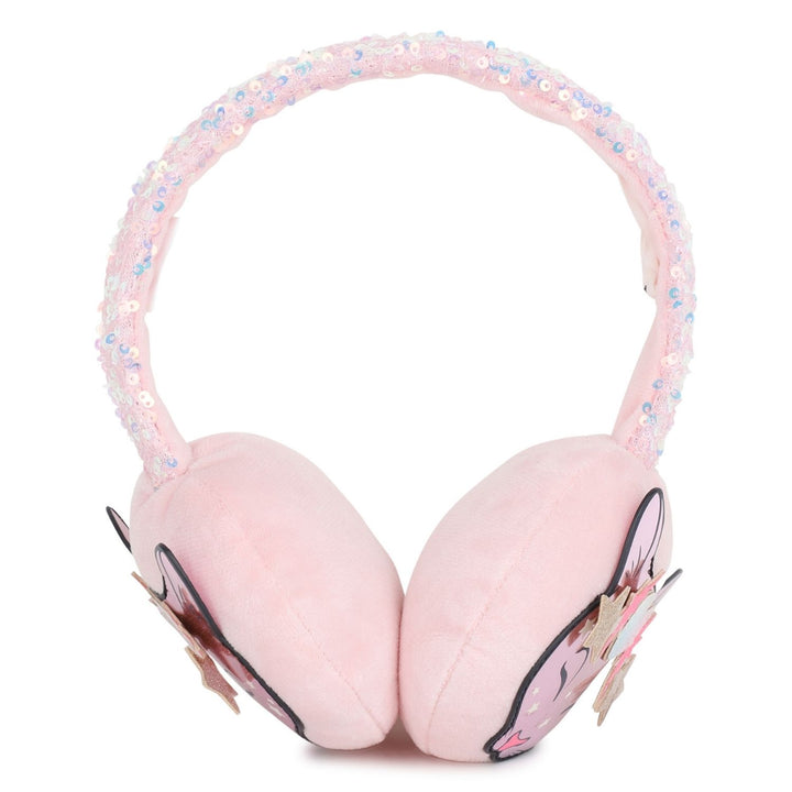 A cute accessory for colder days, these pale pink velour ear muffs for girls are by Billieblush. The flexible band is trimmed with sequins for added sparkle, and the cushioned ear pads are decorated with a sweet, metallic pink cat motif.