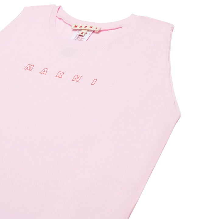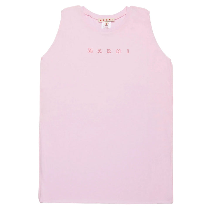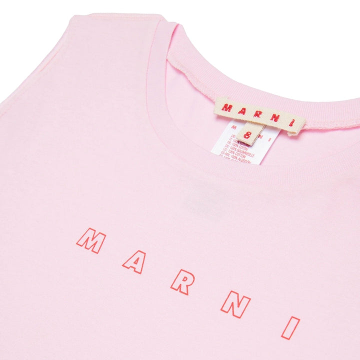 Crew-neck sleeveless cover-up dress in jersey. It features a contrasting color Marni Outline logo on the front. Made of cotton.