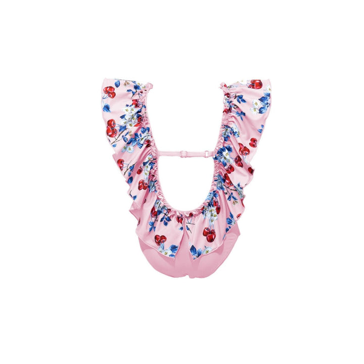 This one-piece swimsuit has a wide neckline at the back with comfortable two-piece effect lacing.