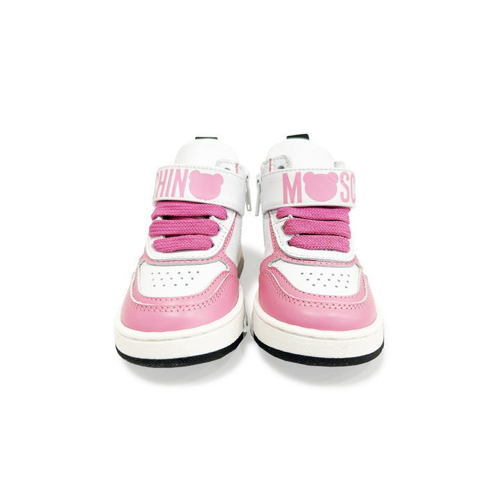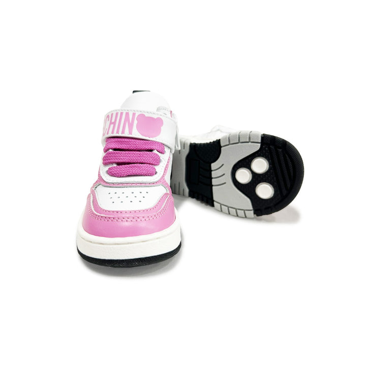Pink leather sandals for girls by luxury Italian designer Moschino Kid-Teen. The soft and supple uppers have an embroidered logo on strap. Stylish and comfortable.