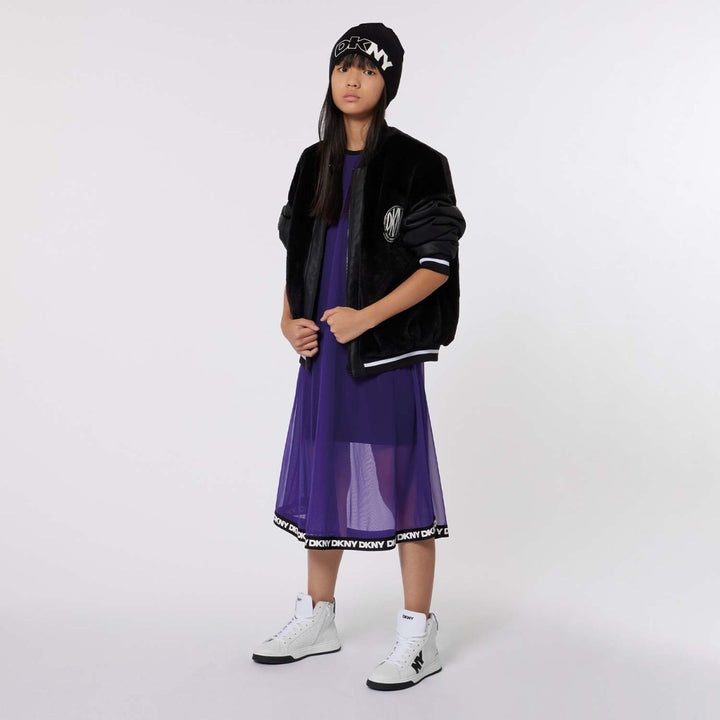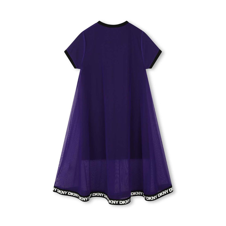 Girls Purple & Black Tulle Overlay Flared Dress