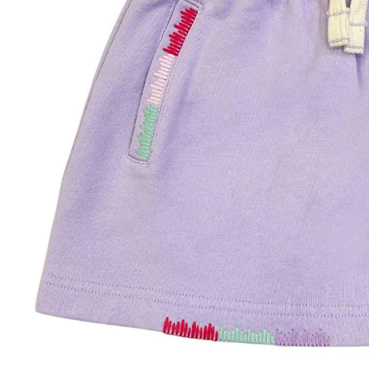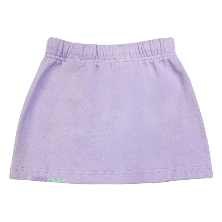 Girl cute violet purple skirt with an elastic drawstring waistband, side slit pockets, and soft French terry lining for comfort.