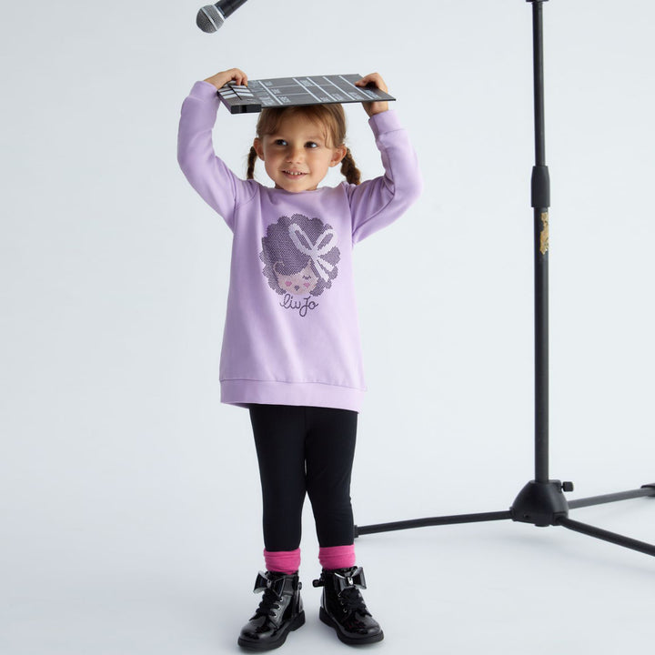 Girls Purple Logo-Gemstones Trouser Set