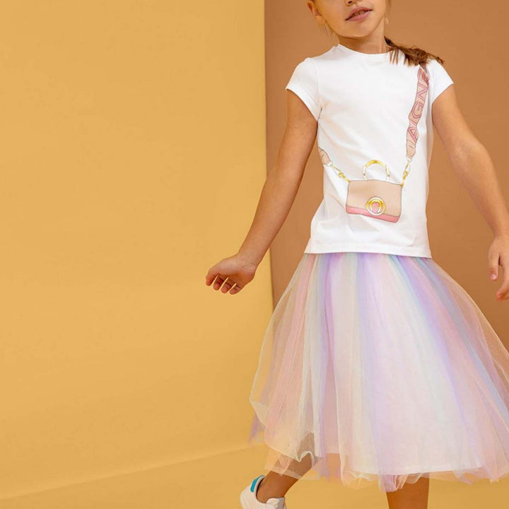 Girls fun tulle skirt in lovely rainbow colours from AIGNER. It has an elasticated pink logo jacquard waistband and asoft, white cotton lining for comfort.