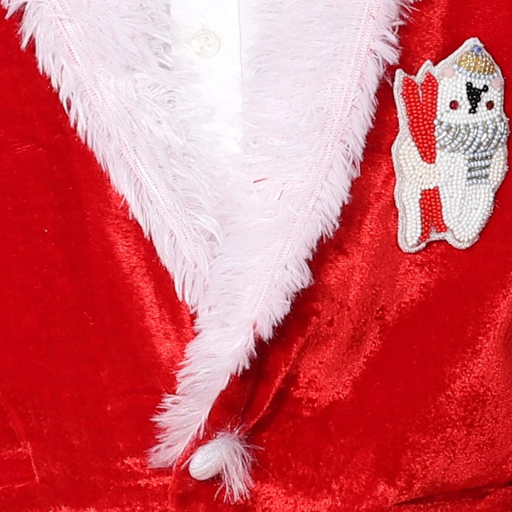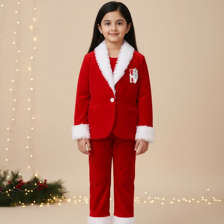 Girls red Christmas jackets made from warm soft fabric featuring festive detailing Perfect for holiday outings and adding a cheerful seasonal touch