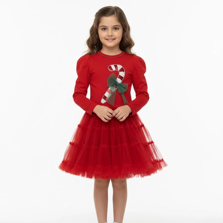 Girls red Christmas sequin work dresses designed with sparkling details for a festive look Made from soft comfortable fabric perfect for parties and holiday celebrations