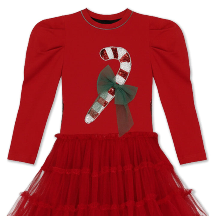 Girls Red Christmas Sequence Work Dresses