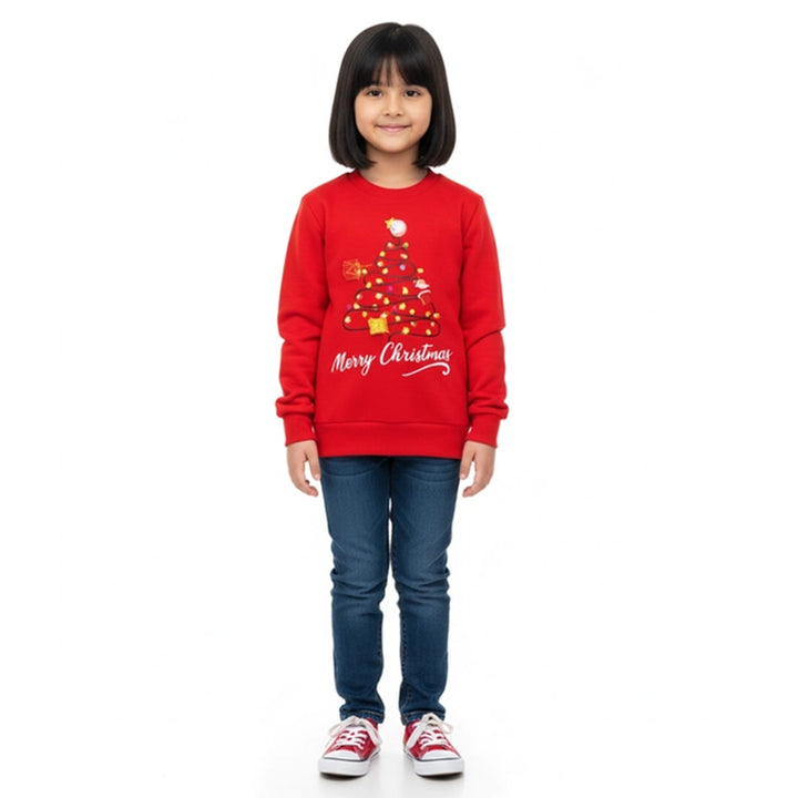 Girls red Christmas tree sweatshirts made from soft warm fabric featuring a festive tree design Perfect for holiday celebrations and cozy winter wear