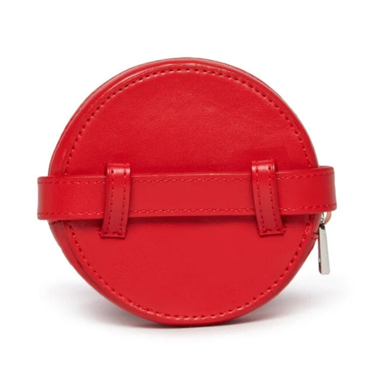 Dot bag with circular shape. Tonal logo patch. Zip closure. Adjustable shoulder strap. Internally lined. Pouch and crossbody wearable. Measurements: 11 cm high, 11 cm wide, 2.5 cm deep.