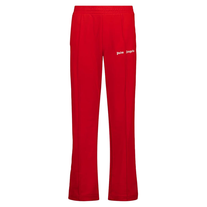 These striking red wide-leg trousers from Palm Angels combine comfort with bold streetwear style. Crafted from premium fabric, they feature the brand’s signature logo print on the side and an elasticated waistband for an easy fit.
