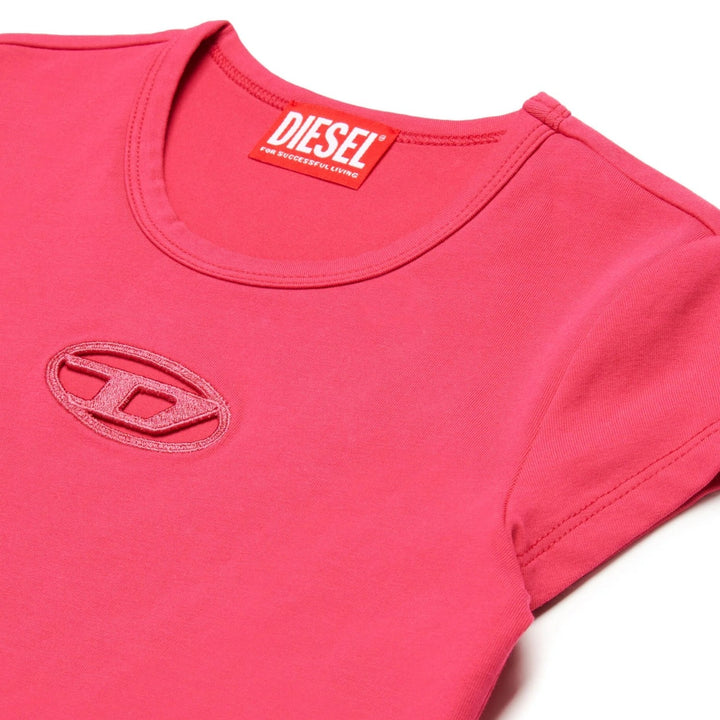 Short-sleeved crew-neck T-shirt in stretch jersey. Featuring the Iconic Oval D logo on the front in a cut-out version. A garment that celebrates the Diesel heritage. A casual option that is easy to match.