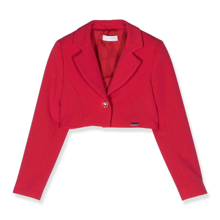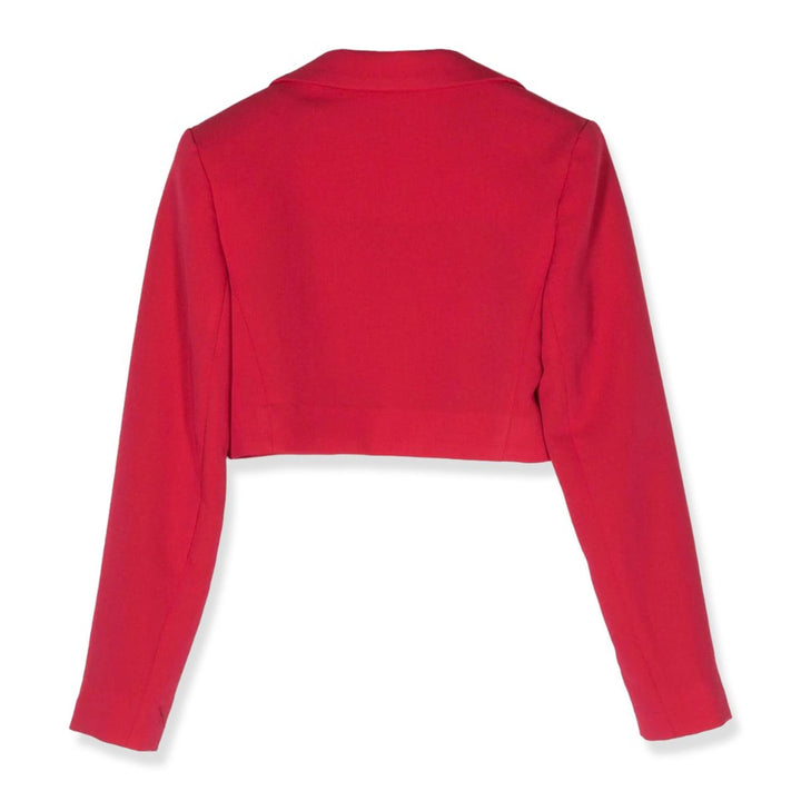 Girls Red Single-Breasted Cropped Blazer