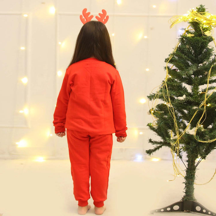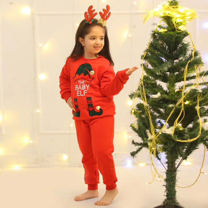 Girls Red The Baby Elf Tracksuits feature a vibrant red color with cute elf-inspired detailing that captures the festive spirit. Made from soft and cozy fabric, this tracksuit offers warmth and comfort. It includes a matching sweatshirt and joggers, perfect for Christmas celebrations, playtime, and holiday outings.